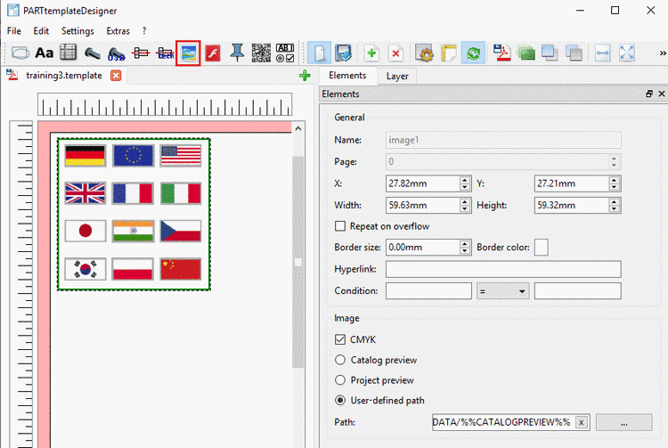 After dragging out the image area with the cursor, for a start the standard catalog bmp-image is loaded by default.