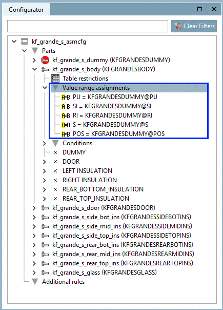 -> The assignments are transferred into the docking window Configurator, under menu item Value range assignments.