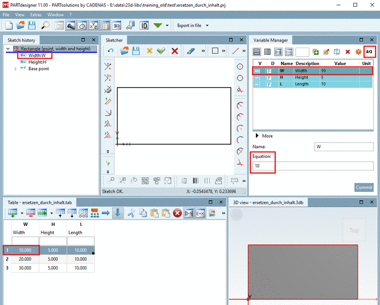 Also In the Sketch history, the replacement by a fixed value can be recognized.