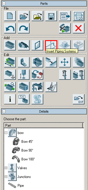 A list of all parts that can be inserted as start part.