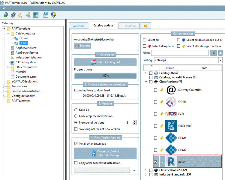 Precondition: Download and install the most current "Revit" classification with PARTadmin.