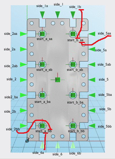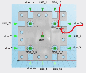The connection point in the center of the section is called start, the others are listed as start_a, start_b etc.