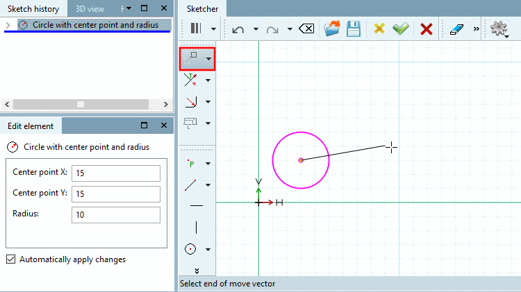 Choose start of move vector / Select end of move vector: You can determine start and end point at any place.