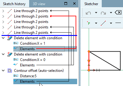 Supposed a sketch uses modifying conditions by accessing table variables, Contour offset will not work, because right from the beginning all selections have to be available.
