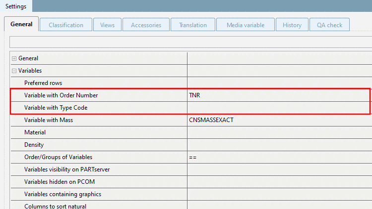 This then results in an entry under Variable with Order Number and/or Variable with Type Code.