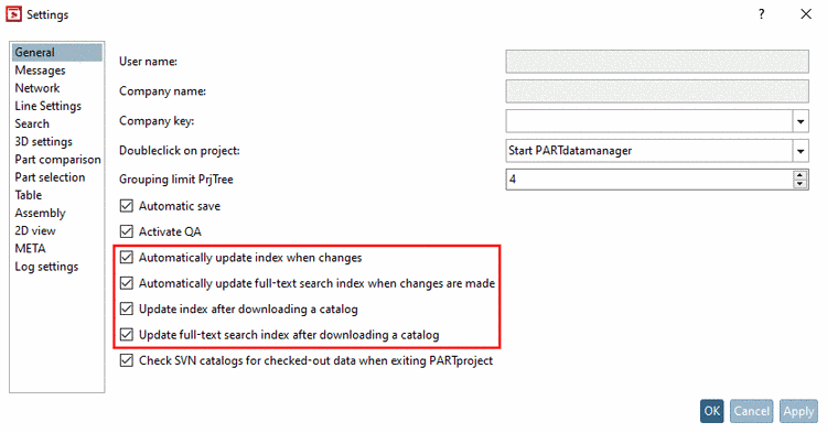 If in PARTproject, setting options, the option Automatically update full-text search index when changes are made has not been activated, you have to update manually via PARTadmin now (see Section 1.3.8.6.3, “Full-text search index” in PARTsolutions - Administration Manual).