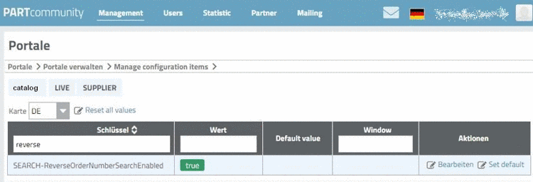 Optionally, the Reverse search (automatic) can be activated for PCOM portals.
