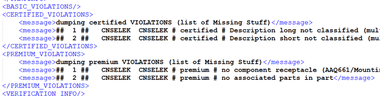 Section CERTIFIED_VIOLATIONS includes all entries preventing the part from getting the Certified state.