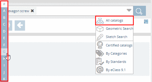 After click on All catalogs and when starting scrolling, a selection option by first letter is displayed.