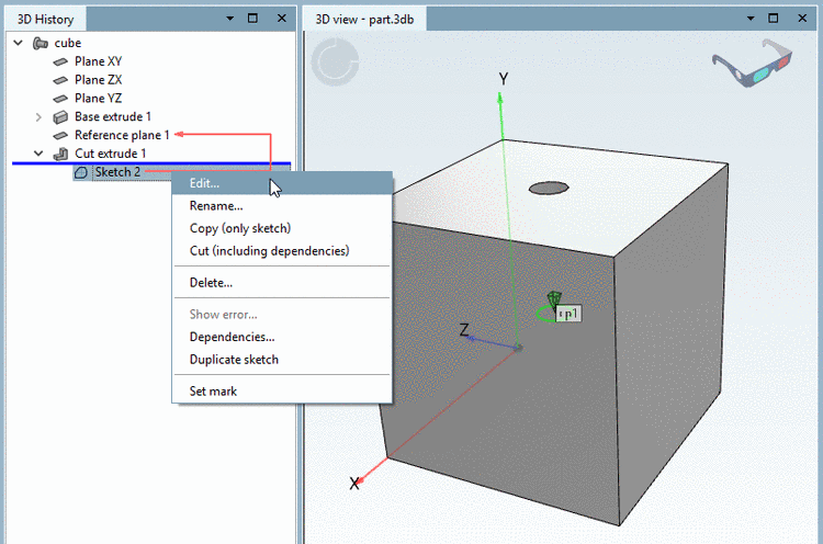 Right-click on the context menu of the sketch (in this example, Sketch 2).