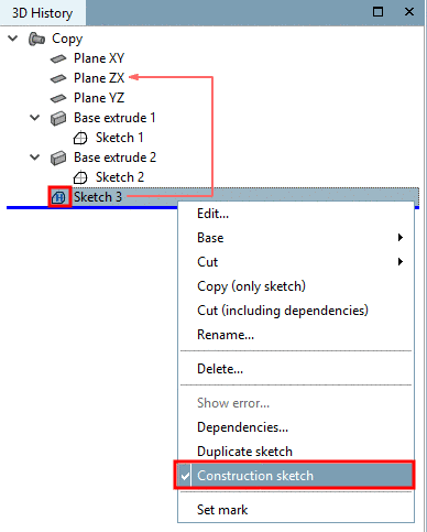 mark a construction sketch as such, in the context menu, click on the