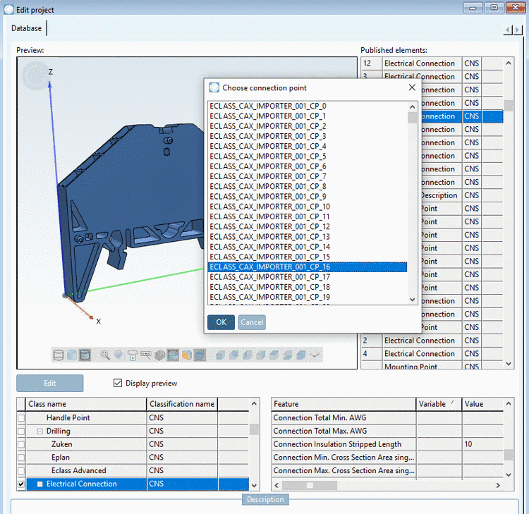 Under Class name, select "Electrical Connection". (The checkbox at the beginning of line has to be activated.)