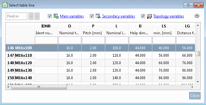 -> Si apre la finestra di dialogo Seleziona riga tabella [Select table line].