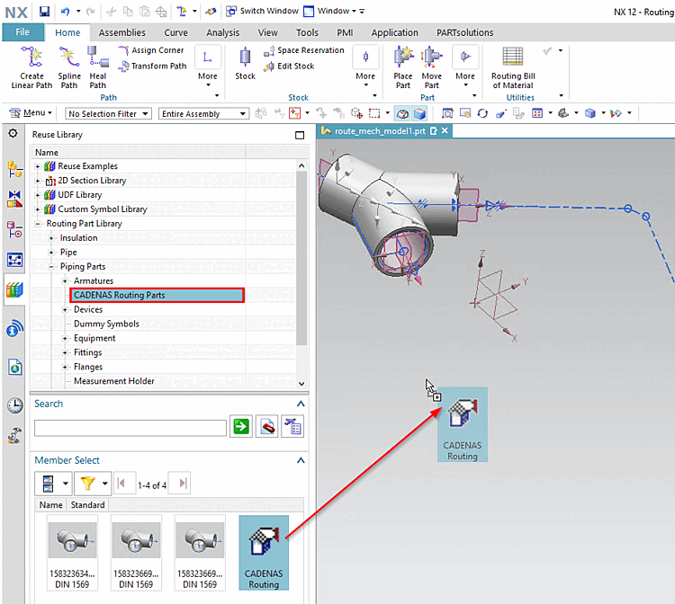 Se il nodo Routing di CADENAS viene trascinato nel componente, si apre la finestra di dialogo Ricerca del riuso del Routing (Parti del Routing di CADENAS). È possibile filtrare le parti della libreria selezionando i valori nei campi dell'elenco.