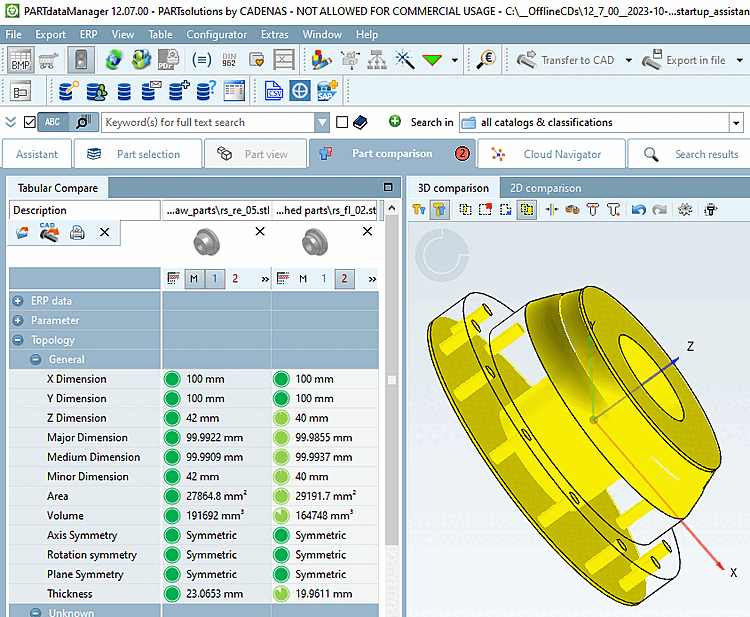 6. Facoltativamente, è possibile aprire il confronto dei componenti [Part comparison] facendo clic sul pulsante Confronta con la parte di ricerca [Compare to search-part].