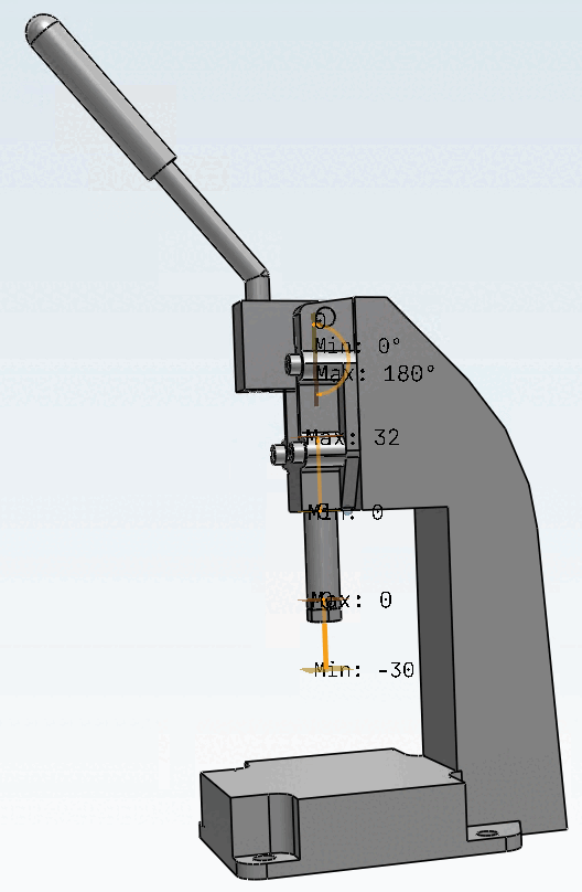 Rotazione con movimento. I limiti generano quindi la massima mobilità del braccio nel CAD.