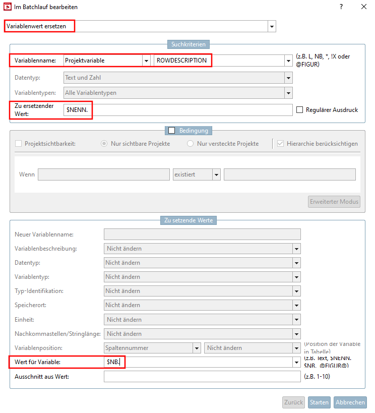 Se non si desidera utilizzare l'intera espressione "$NB." come valore della variabile, ma solo una sottostringa, limitare la sezione del valore [Cutout from value] ai caratteri "1-5", ad esempio.