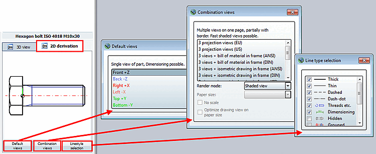 Per trasferire il componente a un sistema CAD 2D, è necessario creare una derivazione 2D. Fare clic sulla scheda Derivazione 2D [2D derivation].