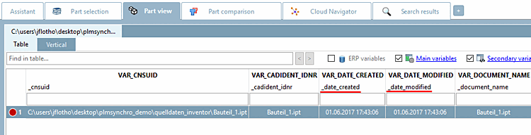 Aprire PARTdataManager. Il catalogo creato con PLM Synchro è ora visualizzato nella vista parti [Part view] in Struttura [Structure] -> Cataloghi [Catalogs].