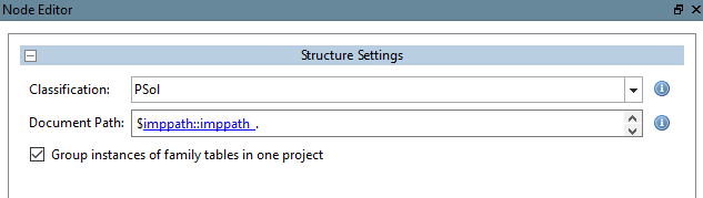 DTOun:' Create new classification Dim classification As PSolUnitProxy.prxClassification_1 Set classification = CreateObject("wh.Classification_1") classification.SystemId = "customID" ' Prepare attribute. Dim newAttr As PSolUnitProxy.prxProductAttribute_1 Set newAttr = CreateObject("wh.ProductAttribute_1") ' Prepare the attribute value. Dim newAttrVal As PSolUnitProxy.prxAttributeValue_1 Set newAttrVal = CreateObject("wh.AttributeValue_1") newAttrVal.Text = "newtestpath/whatever“ ‘ Import Path for parts newAttr.Name = "imppath_" newAttr.Group = "imppath" Set newAttr.Value = newAttrVal ' Add Attribute to classification classification.addAttributeValue(newAttr) ' Add classification to product product.addClassification(classification)Modificare il nodo struttura in PARTdataCenter.