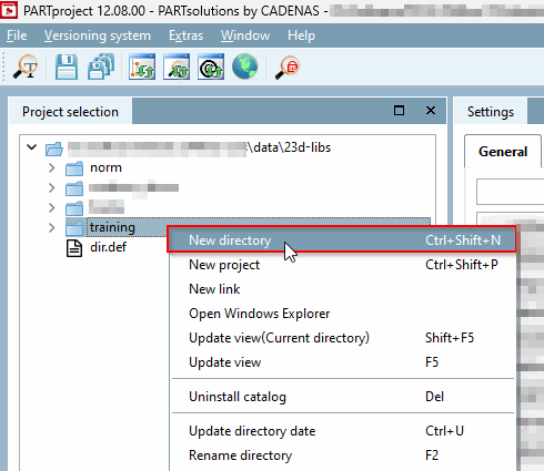 Richiamare il menu contestuale della cartella di formazione nella selezione del progetto [Project selection].