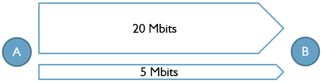La latenza è il tempo necessario a un segnale per percorrere una certa distanza. Nel seguito, il tempo di latenza si riferisce al tempo completo di andata e ritorno, cioè da A a B e viceversa. È il tempo che trascorre prima che inizi una transazione: il client A deve comunicare con il server B e riceve una risposta, quindi inizia la transazione.