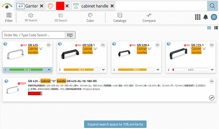 La barra colorata mostra il grado di somiglianza tra il colore di ricerca e il colore effettivo del pezzo. Anche se il colore non è esattamente lo stesso, la corrispondenza è comunque raggiunta; solo la percentuale di somiglianza è inferiore.