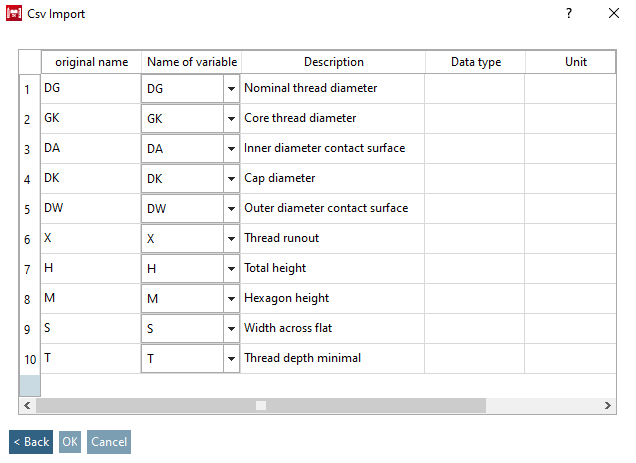 Nella colonna Nome variabile è possibile decidere per ogni variabile se ignorarla o mapparla.