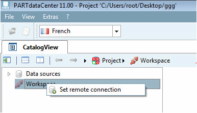 10. In Area di lavoro [Workspace], fare clic sul comando del menu contestuale Imposta connessione remota [Set remote connection]. (Se il comando non viene visualizzato, se necessario riavviare il computer).