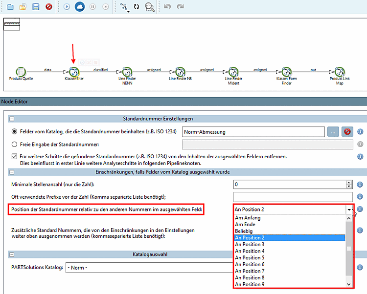 Per le fasi successive, rimuovere il numero standard trovato (ad es. ISO 1234) dal contenuto dei campi selezionati. Questo influisce principalmente sulle fasi di analisi successive nei nodi della pipeline: [Remove found Standard number (e.g. ISO 1234) from selected fields for further steps in pipeline]