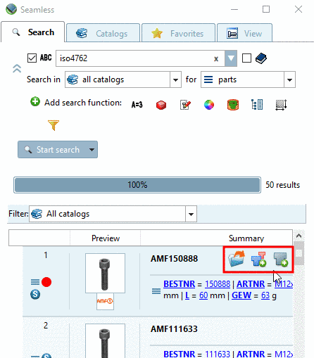 In the 3D tooltip of the result list the bounding box[58] of the search part is also displayed (analogously to the red bounding box in the 2D quick compare).