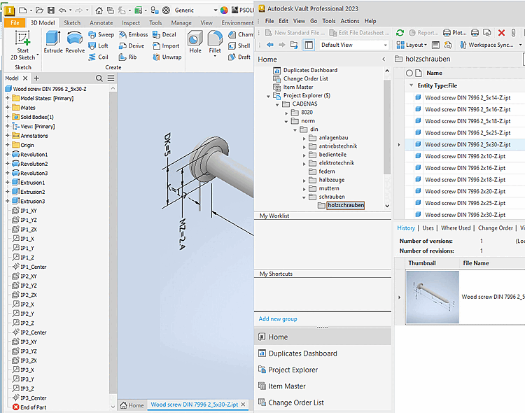 Sono stati attivati i seguenti addin: PARTsolutions, Inventor Vault, Vault Data Standard.