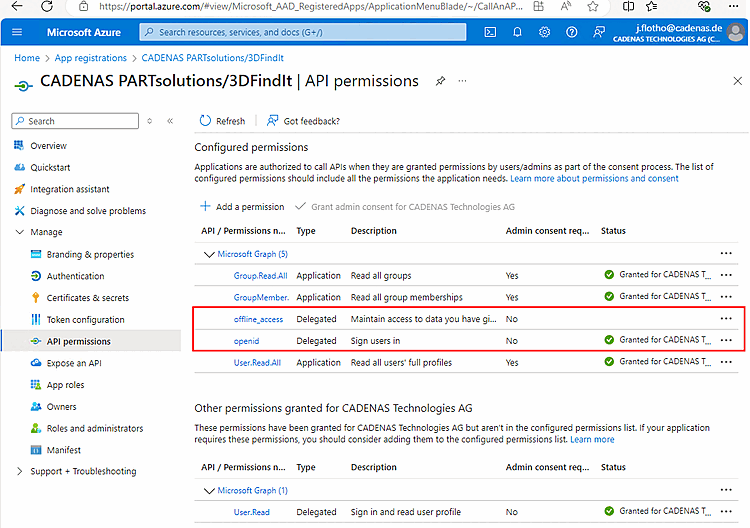 Nel primo passo, create una registrazione dell'app per CADENAS PARTsolutions/3Dfindit nella vostra azienda in Microsoft Azure.