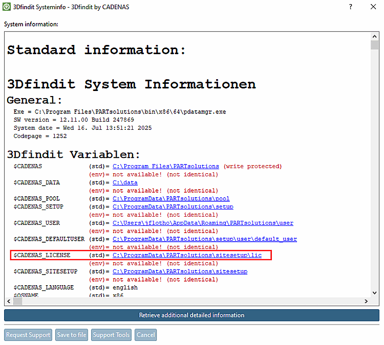 -> Si apre la finestra di dialogo 3Dfindit Systeminfo - 3Dfindit by CADENAS.