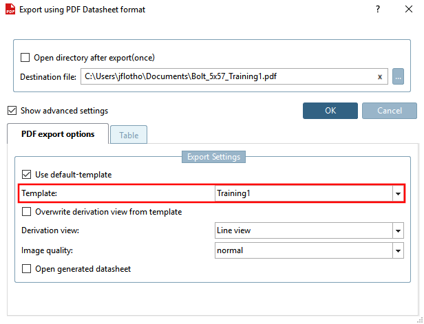Nome visualizzato [Visible name]: nome che viene visualizzato come nome del modello durante l'esportazione del foglio dati in PARTdataManager. Se il nome [Visible name] visualizzato non è stato determinato, viene utilizzata la voce Nome [Name].