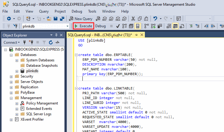 plinkdb_reuse.sql(sotto..\tools\databases\MSSQL) usare.USE [master] GO CREATE LOGIN [erpuser] WITH PASSWORD=N'erpuser', CHECK_EXPIRATION=OFF, CHECK_POLICY=OFF GO CREATE DATABASE [plinkdb] ON ( FILENAME = N'<DBFILE>' ), ( FILENAME = N'<DBLOGFILE>' ) FOR ATTACH GO if not exists (select name from master.sys.databases sd where name = N'plinkdb' and