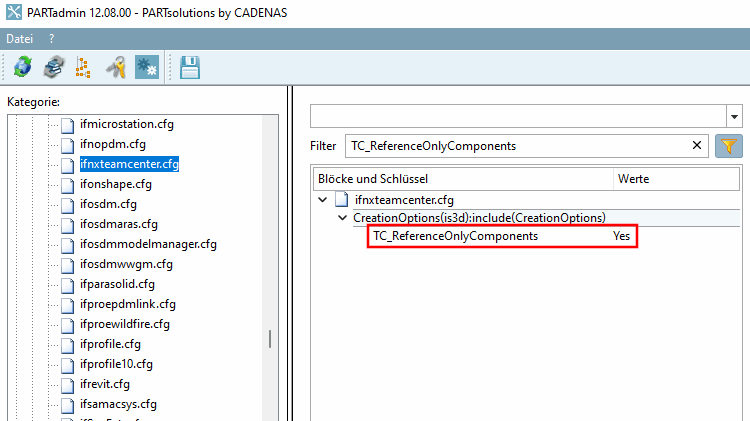 I componenti di un assieme creati con PARTsolutions possono essere contrassegnati come componente di solo riferimento (funziona solo nel contesto di Teamcenter).
