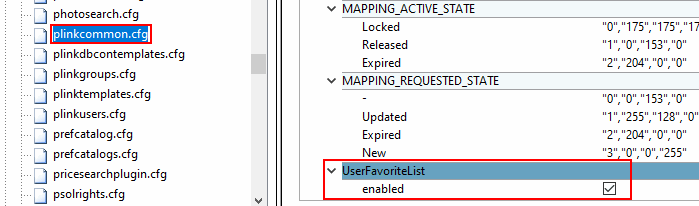 • Nel $CADENAS/SETUP/plinkcommon.cfg deve la chiave enabled nel blocco UseFavoriteList per true Alzarsi.