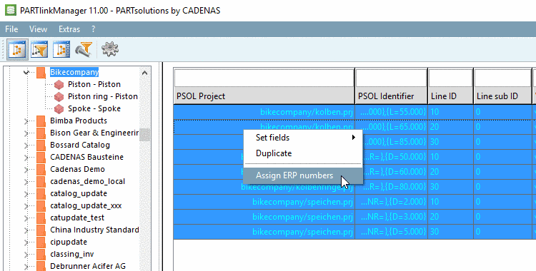 8. Open PARTdataManager and select the catalog "Bikecompany".