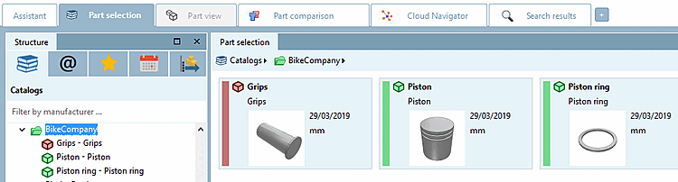 Figura 4.249, “Catalogo PARTdataManager "Bikecompany" V1”Il progetto "Speiche" non esiste più (vedi ).