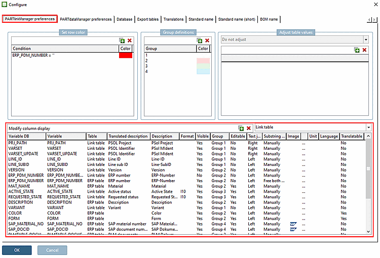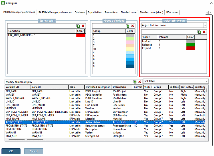 Per i dettagli si veda Sezione 4.9.7, “ Colori di sfondo per le colonne ERP/PDM / plinkcommon.cfg -> Blocco [GROUP_COLORS] -> Chiave GROUP<numero> ”.