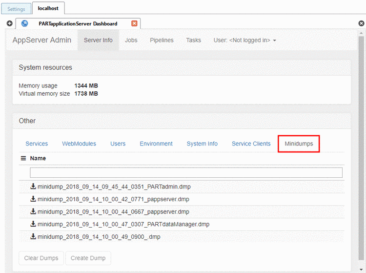 For AppServer Administration, call the PARTapplicationServer Dashboard.