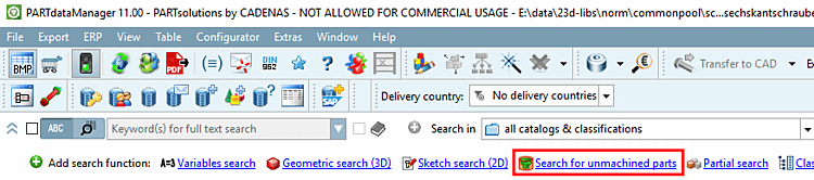 Se la parte di ricerca richiesta non è ancora visualizzata, è necessario caricarla prima nella vista parti [Part view].
