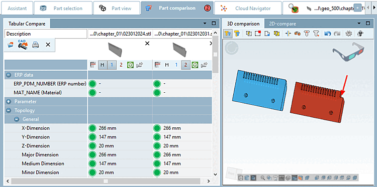 Il pezzo finito può essere confrontato [Part comparison] visivamente con i pezzi grezzi trovati in qualsiasi momento nel confronto dei componenti [Part comparison].