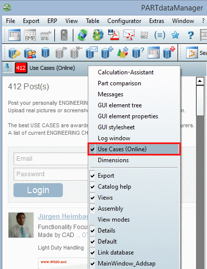 PARTdataManager -> Context menu of any toolbar or menu bar