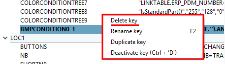 Fare clic con il tasto destro del mouse su un valore chiave per aprire il menu contestuale.