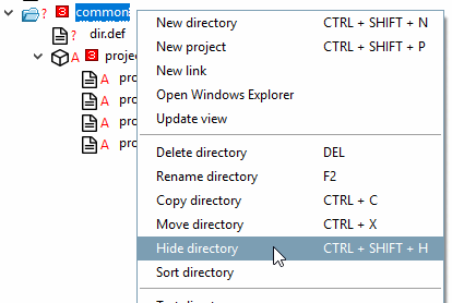 La directory "common" può essere nascosta di default per la vista in PARTdataManager (Hide directory [Hide directory] ).