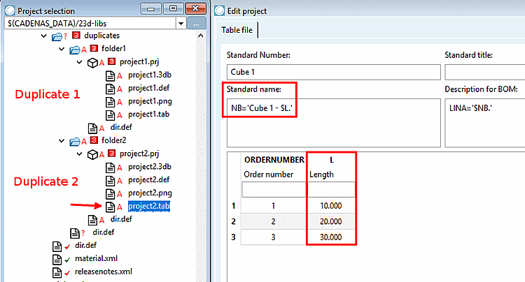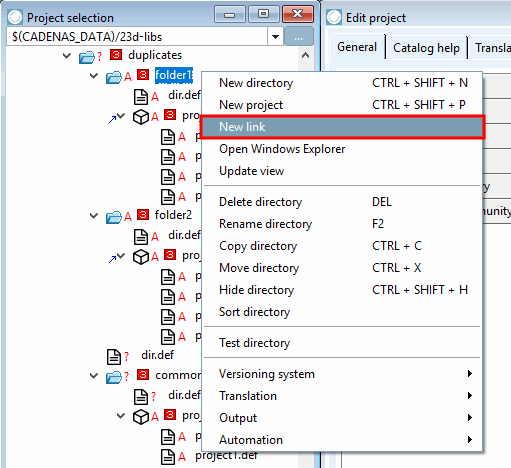 La funzione Nuovo collegamento [New link] è anche la soluzione migliore se i progetti sono stati creati come veri e propri duplicati fisici. Tali progetti causano un messaggio di errore durante il controllo QA [QA check], poiché la designazione standard non deve essere la stessa per i diversi progetti. Vedere i Sezione 6.8, “Messaggi di errore: Problema - Soluzione (PARTproject)” -> Punto "Il progetto ha la stessa denominazione standard".