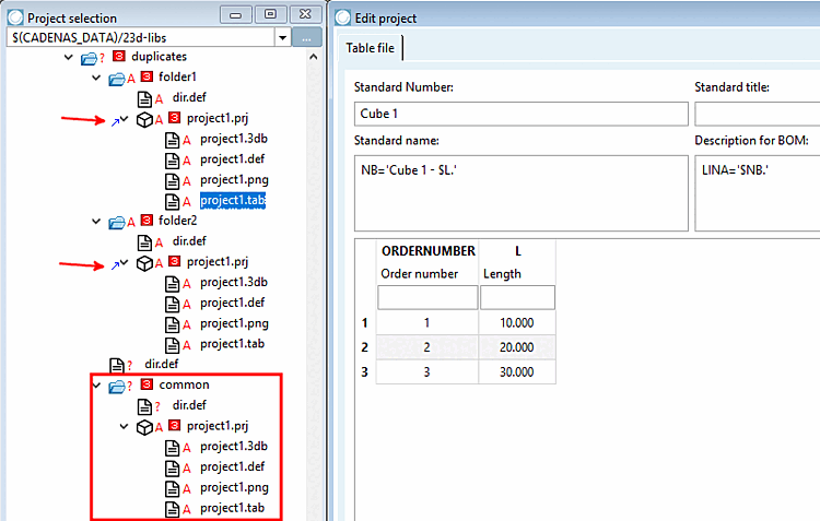 -> È possibile vedere il progetto reale sotto "comune" e i progetti di collegamento sotto "cartella1" e "cartella2". È possibile vedere la posizione di archiviazione effettiva di un progetto nella barra del titolo in alto.