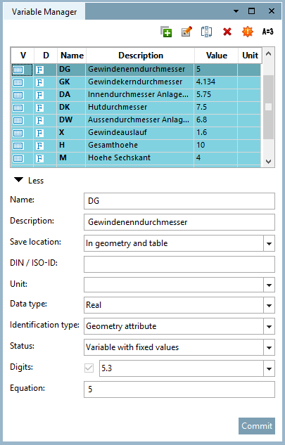 In PARTdesigner, invece di valori di dimensionamento fissi, si impostano variabili per le quali vengono memorizzati valori concreti in tabelle. Questo metodo ha il vantaggio di non dover creare un disegno separato per ogni caratteristica del componente.